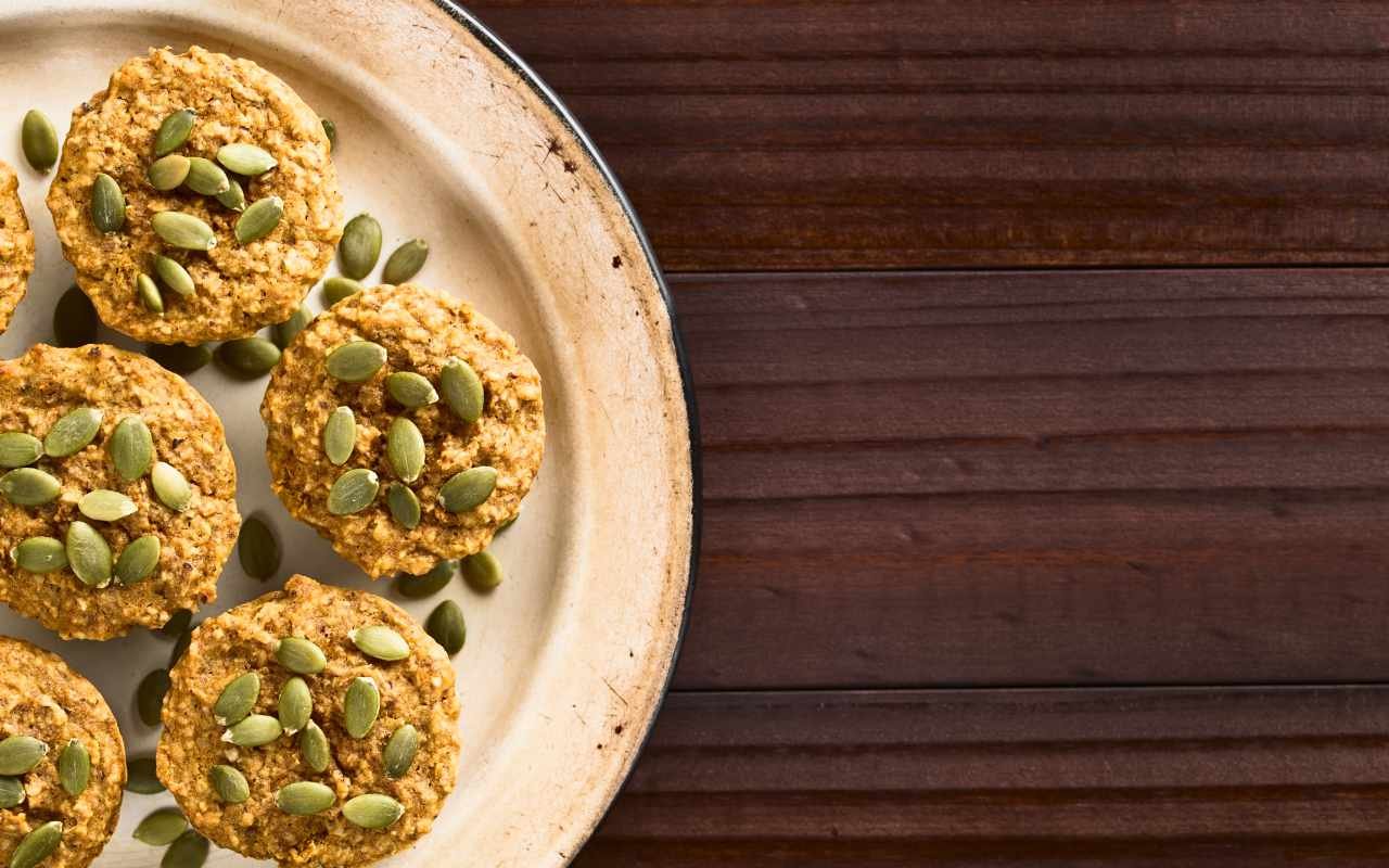 Plant-based protein snacks - homemade energy muffins with pumpkin seeds for muscle recovery and post-workout nutrition